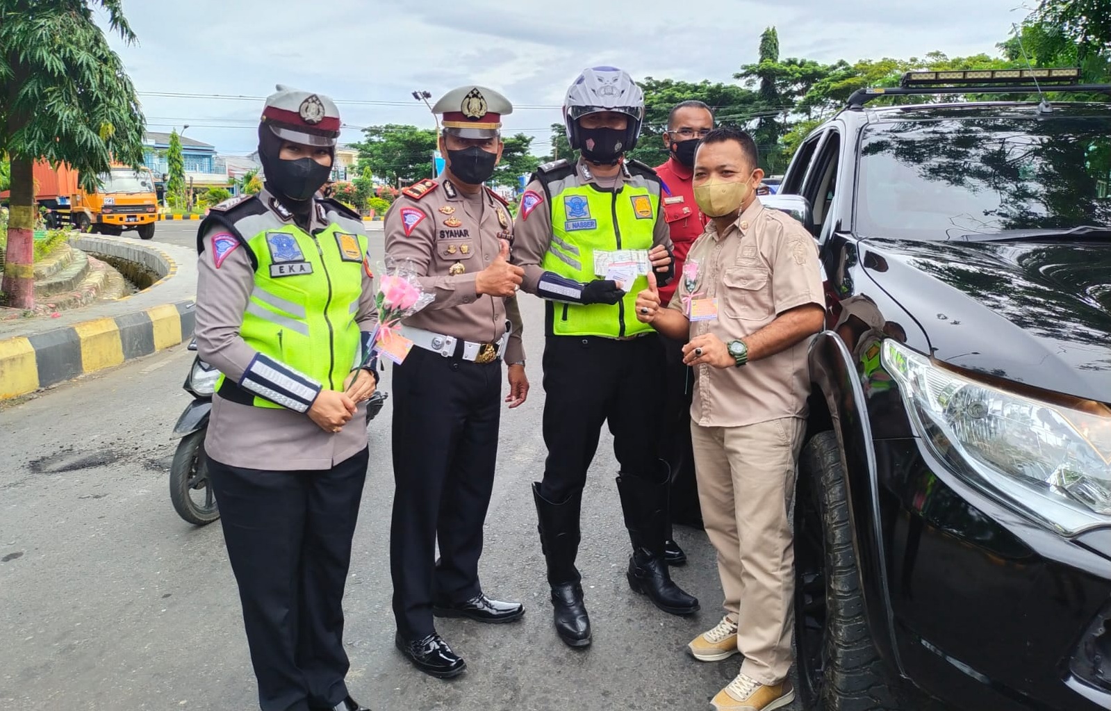 “Salut buat Jajaran Satlantas Polres Jeneponto, mereka dengan simpatik membagikan masker dan bunga kepada masyarakat pengguna jalan,” katanya.