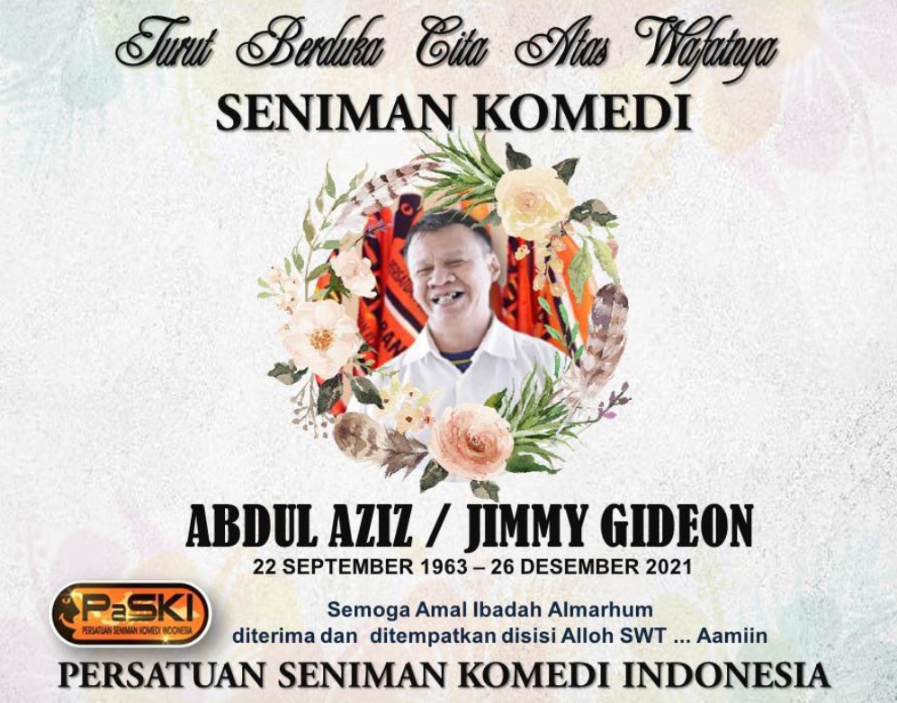 REPUBLIKNEWS.CO.ID, JAKARTA — Jimmy Gideon atau Abdul Azis, pelawak yang sering muncul dalam sinetron bersama Lidya Kandou di tahun 1990 an dikabarkan meninggal dunia.