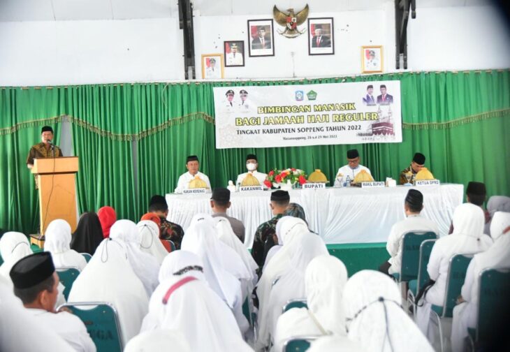 REPUBLIKNEWS.CO.ID, SOPPENG — Kementerian Agama Kabupaten Soppeng melakukan bimbingan manasik bagi jamaah calon Haji Reguler tingkat Kabupaten Soppeng di Baruga Rujab Bupati Soppeng, Sabtu (28/05/2022).
