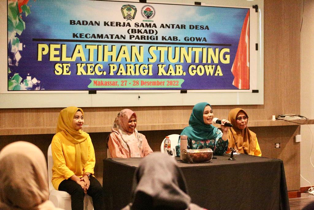Sementara itu, Camat Parigi, Nuraeny Apriyani yang turut hadir mendampingi Ketua TP PKK Kabupaten Gowa menjelaskan, dalam pelatihan ini pihaknya juga mendorong bagaimana kedepan pemanfaatan dana desa juga dapat menyentuh pembangunan kesehatan untuk penanganan konvergensi stunting di desa se-Kecamatan Parigi.