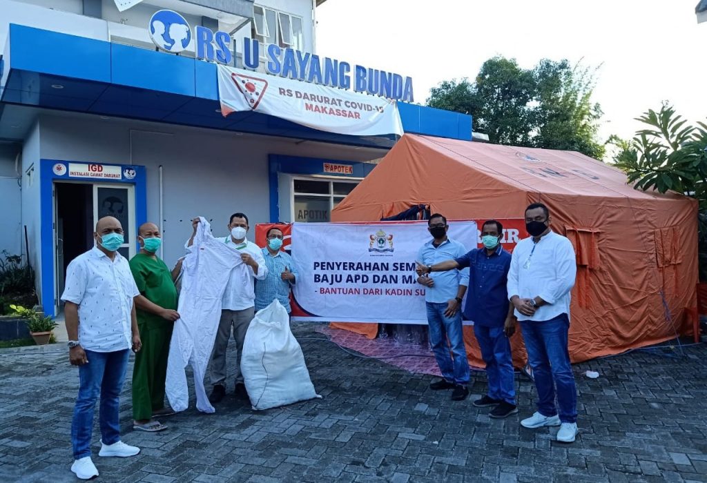 REPUBLIKNEWS.CO.ID, MAKASSAR — Kamar Dagang Industri (Kadin) Provinsi Sulawesi Selatan menyerahkan bantuan di RS Darurat Covid-19 Sayang Bunda, Jalan Hertasning Makassar, sebanyak 100 APD (Alat Pelindung Diri), yakni baju hazmat, dan masker untuk penanganan dan warga terdampak pandemi Covid-19, Kamis (28/05/2020) kemarin.