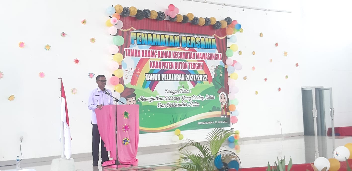 REPUBLIKNEWS.CO.ID, BUTON TENGAH – Kepala Dinas Pendidikan dan Kebudayaan (Dikbud) Buton Tengah (Buteng) Abdullah menghadiri acara wisuda Taman Kanak-kanak (TK) Sekecamatan Mawasangka Tahun Ajaran 2021-2022, di Gedung Kesenian Kecamatan Mawasangka, Rabu (22/06/2022).