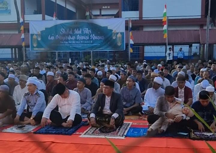 REPUBLIKNEWS.CO.ID, MAKASSAR — Kepala Divisi Pemasyarakatan Kanwil Kemenkumham Sulsel Suprapto melaksanakan salat Idul Fitri bersama ribuan Warga Binaan Pemasyarakatan (WBP) di Lapas Kelas I Makassar.