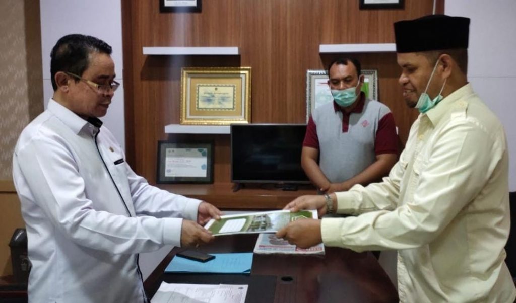 Penyerahan kontrak kerja dari Kakanwil Kemenag Sultra (kiri) kepada Kakan Kemenag Baubau (kanan). Foto: dok. Humas Kantor Kemenag Baubau