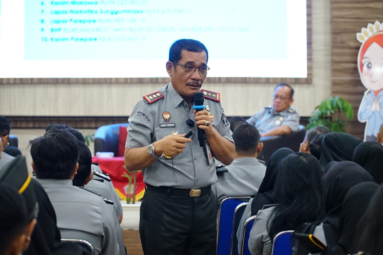 REPUBLIKNEWS.CO.ID, MAKASSAR — Kakanwil Kemenkumham Sulsel Liberti Sitinjak memberikan pengarahan kepada seluruh pegawai dalam menyikapi hasil exit meeting atas rekomendasi hasil pemeriksaan Badan Pemeriksa Keuangan (BPK).