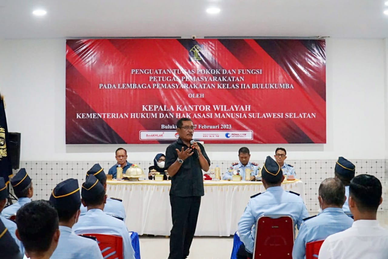 REPUBLIKNEWS.CO.ID, BULUKUMBA — Kepala Kantor Wilayah Kementerian Hukum dan HAM Sulawesi Selatan (Kakanwil Kemenkumham Sulsel), Liberti Sitinjak memberikan penguatan tugas pokok dan fungsi (Tusi) ke petugas pemasyarakatan, di Lembaga Pemasyarakatan (Lapas) Bulukumba.