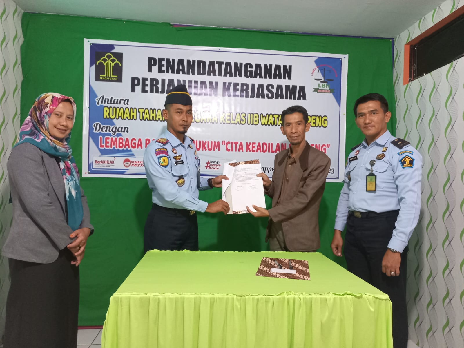 Perjanjian tersebut terkait Pos Layanan Bantuan Hukum di Rutan Kelas IIB Watansoppeng. Dimana pelayanan hukum yang diberikan merupakan layanan gratis yang bisa dinikmati seluruh warga binaan pemasyarakatan.