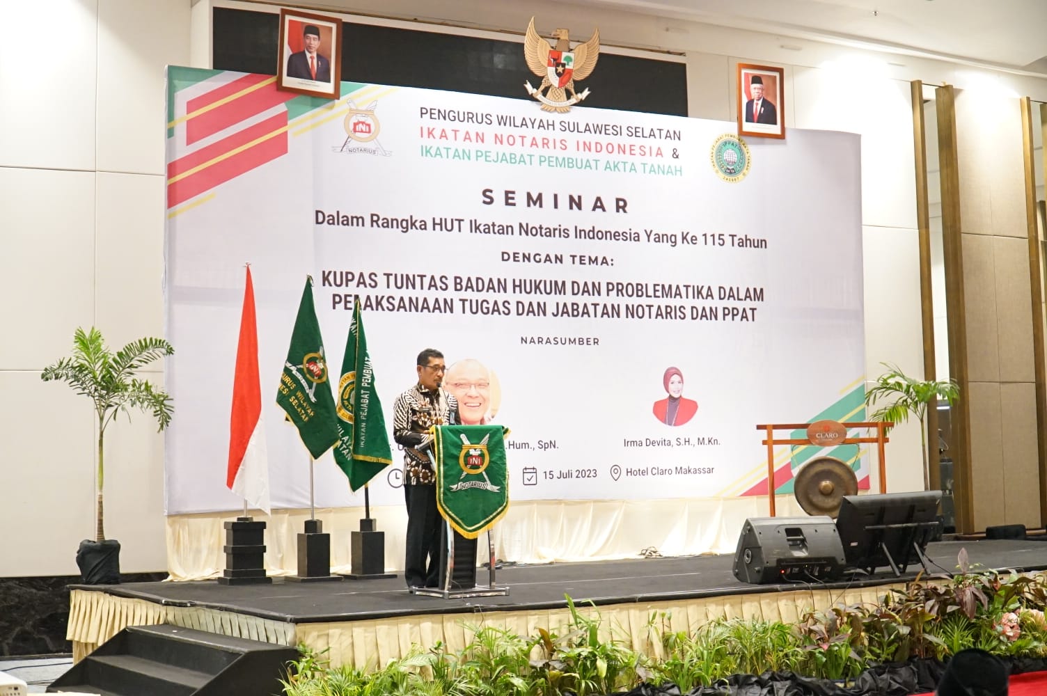 “Sebagai seorang notaris, sumpah ini menjadi pedoman dalam melaksanakan jabatan profesinya dan ditepati dengan penuh keikhlasan dan kejujuran,” ungkapnya saat membuka Seminar Nasional dalam Rangka Hari Ulang Tahun (HUT) Ikatan Notaris Indonesia (INI) yang ke-115 Tahun, di Claro Hotel Makassar, Sabtu (15/07/2023).