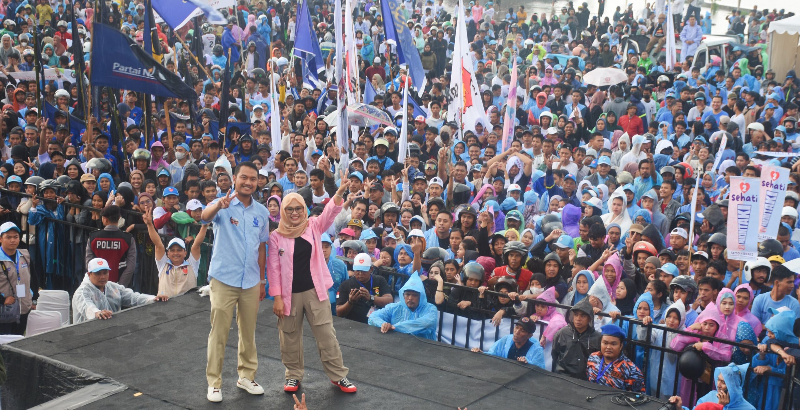 REPUBLIKNEWS.CO.ID, MAKASSAR – Kampanye akbar pasangan calon Wali Kota dan Wakil Wali Kota Makassar nomor urut 2, Andi Seto Asapa-Rezki Mulfiati Lutfi (Sehati) di Lapangan Tugu MNEK, Pantai Losari, Makassar, berlangsung meriah dan penuh semangat meski diguyur hujan, Minggu (17/11/2024).