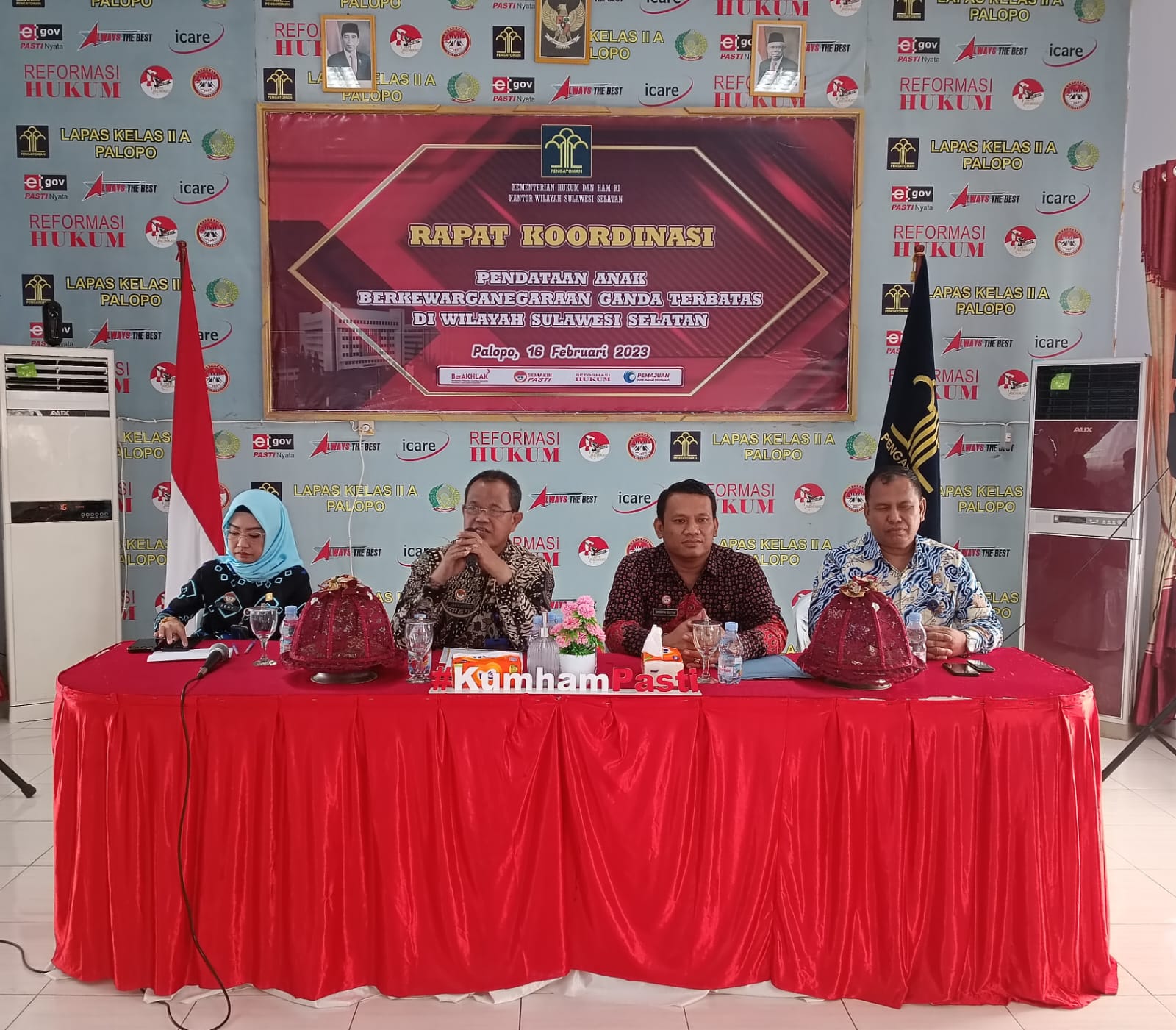 Rencana ini dibahas dalam Rapat Koordinasi Pendataan Anak Berkewarganegaraan Ganda Terbatas yang berlangsung di Lembaga Pemasyarakatan Kelas II A Palopo, Jalan Dr. Ratulangi. Dalam pertemuan itu hadir Kepala Subbidang Pelayanan Administrasi Hukum Umum Kanwil Kemenkumham Sulsel Jean Henry Patu, Kepala Lembaga Pemasyarakatan Kelas II A Palopo, Kepala Balai Pemasyarakatan Kelas II Palopo, JFU pada Subbidang Pelayanan AHU yang terdiri Andi Wildania, Fajar Kartini, dan JFT Perancang A. Fachruddin
