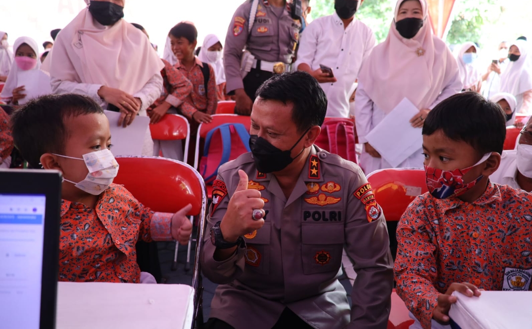 “Kami bekerja sama dengan TNI maupun Dinkes dan Instansi terkait telah menyiapkan sebanyak 1.146 dosis vaksin baik dosis 1 mapupun dosis 2 dan juga kami bagikan 40 paket perlengkapan alat sekolah bagi para pelajar yang ada di SD Negeri Bujanggadung Cilegon,” kata Kapolda Banten.