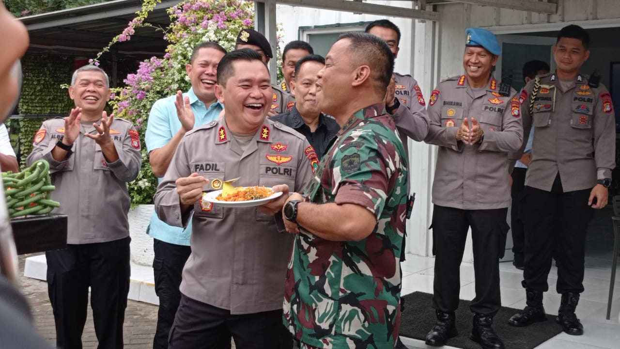 Rombongan Kapolda Metro Jaya membawa Tumpeng dan Kue Ulang Tahun ukuran 1,5 m x 1,5 m diterima langsung Pangdam Jaya Mayjen TNI Untung Budiharto.