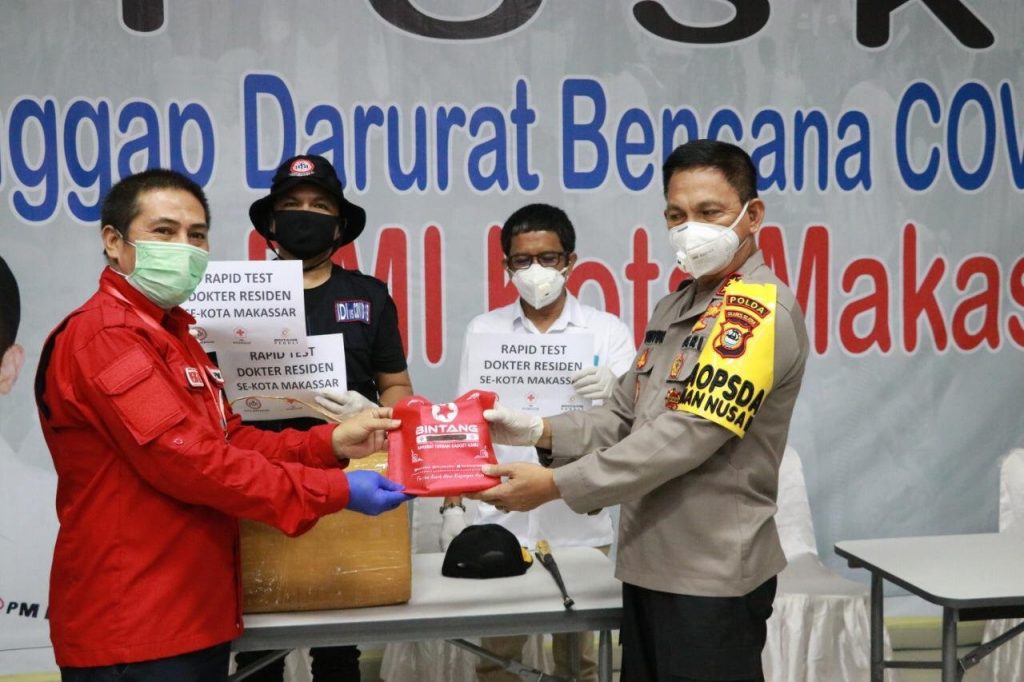 REPUBLIKNEWS.CO.ID, MAKASSAR — Kapolda Sulsel Irjen Pol Mas Guntur Laup, bekerja sama dengan PMI dan PT. Bintang menyerahkan bantuan berupa 1.000 Rapid Test Covid-19 kepada PMI Sulsel dan IDI Makassar untuk disalurkan.