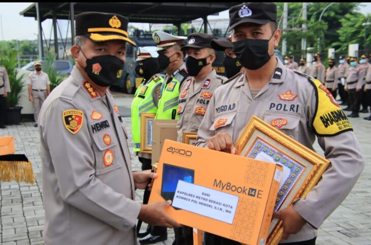 REPUBLIKNEWS.CO.ID, KOTA BEKASI — Kapolres Metro Bekasi Kota Kombes Pol Hengki memberikan penghargaan kepada beberapa anggotanya. Hal itu disampaikan saat apel pagi di Mapolres Metro Bekasi Jl. Pangeran Jayakarta kelurahan Harapan Mulya Kota Bekasi pada Senin (30/05/2022).