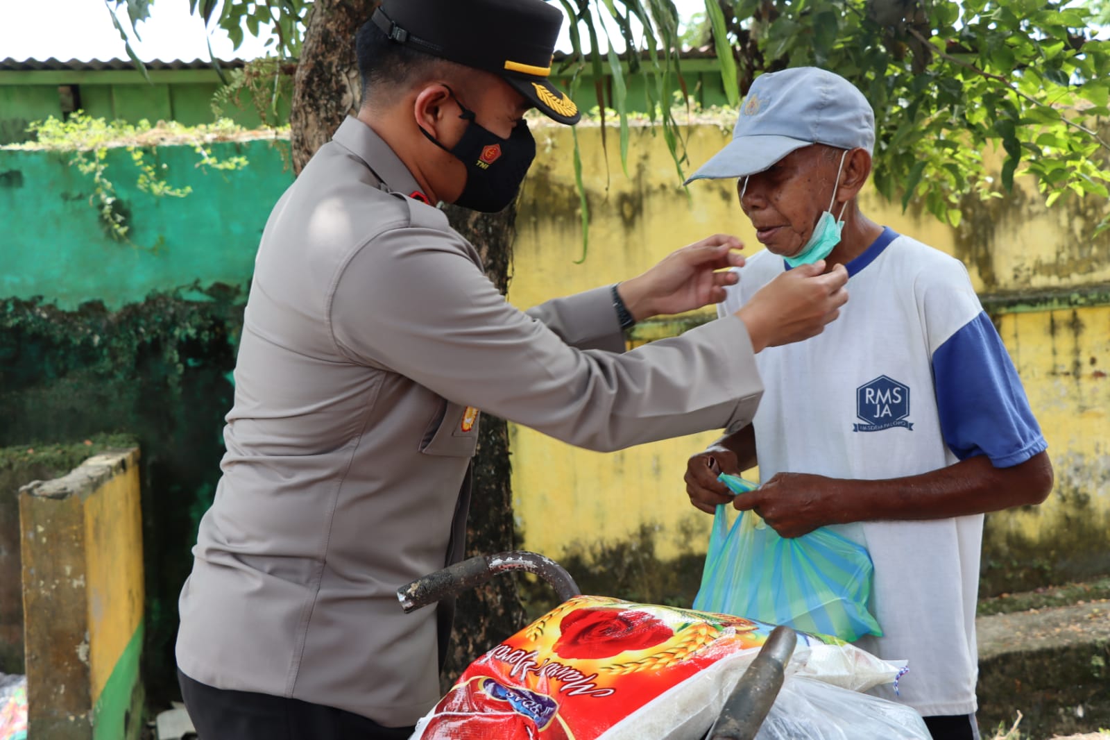 Dua warga yang berada dipinggir jalan tersebut awalnya kaget saat didatangi polisi. Mereka menduga ada suatu permasalahan, tetapi malah dikasih sembako berupa beras.