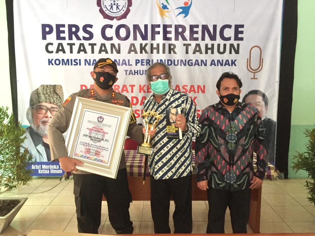 Penyerahan penghargaan diberikan langsung oleh Ketua Komnas Perlindungan Anak, Arist Merdeka Sirait di kantor Komnas PA, dan Penghargaan Polisi Sahabat anak diserahkan langsung oleh Dr. Seto Mulyadi,S.P.Si.M.PSi (Kak Seto) dan Polisi Selebriti Award 2020 diserahkan oleh Zandre Badak Ketua Polisi Selebriti.
