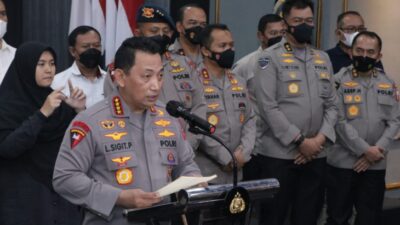 Kapolri Jenderal Listyo Sigit Prabowo mengumumkan enam tersangka tragedi Kanjuruhan, Malang, Jawa Timur.