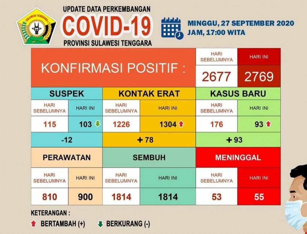 Update kasus Covid-19 Sulawesi Tenggara, Minggu (27/09/2020).