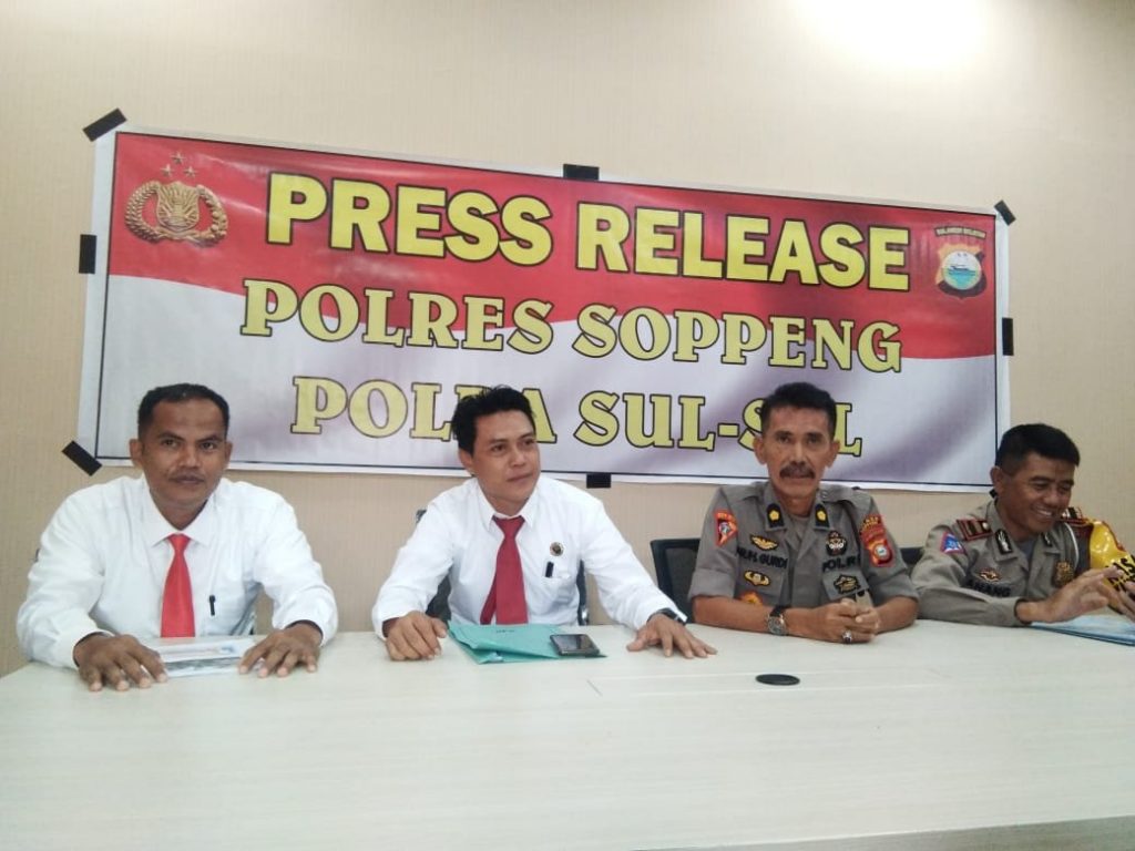 Press Release tersebut dipimpin oleh Kabag Ops Polres Soppeng Kompol. Muh. Gurdi, bersama Kasat Lantas Polres Soppeng Iptu. Hasang, Kasat Narkoba Polres Soppeng Iptu. Bambang Supriady, KBO Reskrim dan Humas Polres Soppeng.