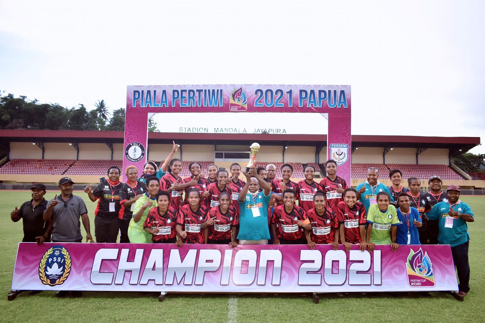 REPUBLIKNEWS.CO.ID, JAYAPURA — Tim Sepakbola Putri Persitoli Tolikara berhasil keluar sebagai juara Piala Pertiwi 2021 Papua, usai mengandaskan perlawanan Persemi Mimika dengan skor telak 9-0 pada Partai Final Leg kedua yang digelar di Stadion Mandala, Kota Jayapura, Kamis (27/01/2022).