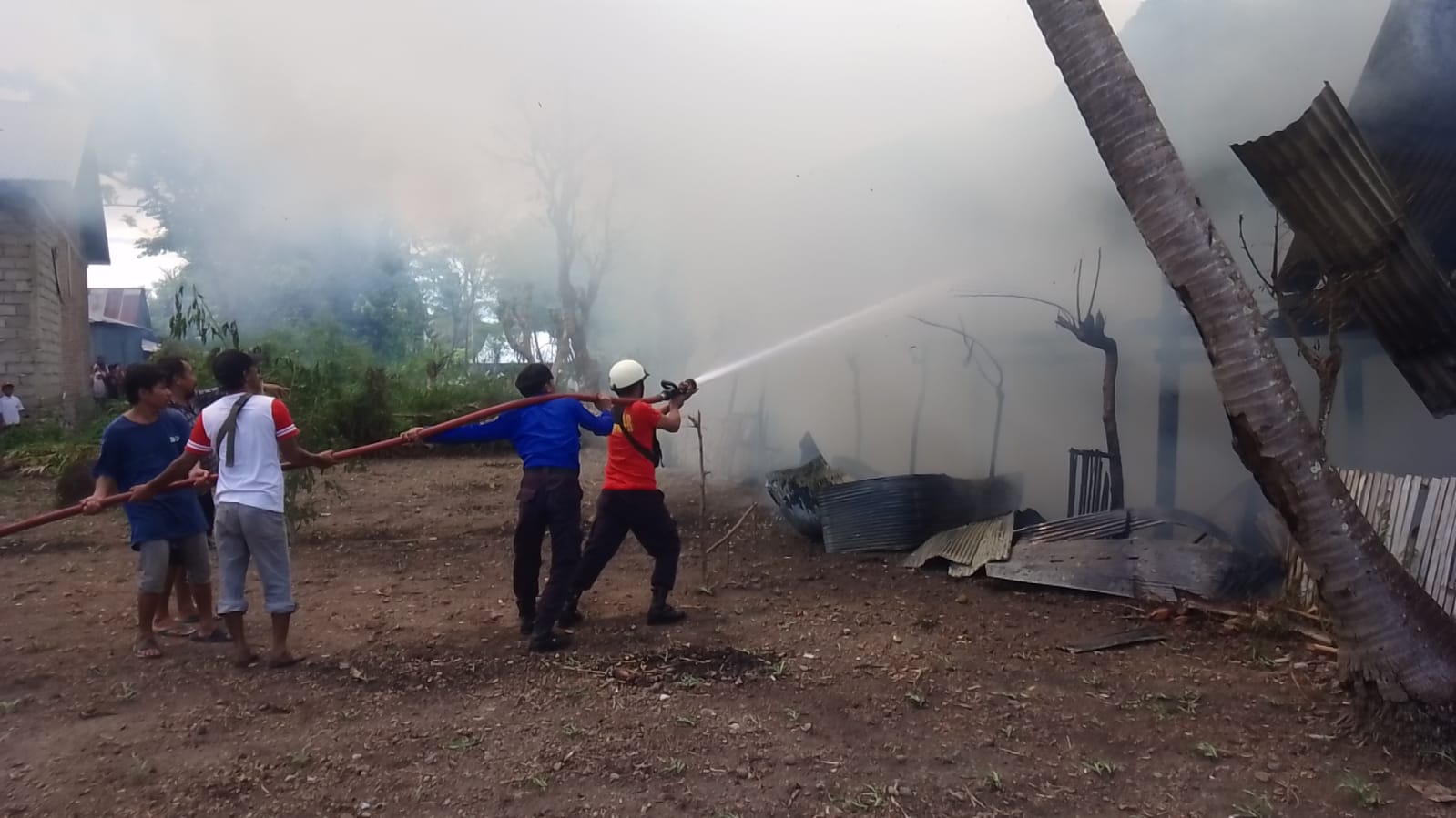 “Waktu kejadian pemilik rumahnya tidak ada, lagi pergi tanam jagung di kebun. Untuk penyebab kebakaran di duga akibat kosleting listrik,” ujar Agus.
