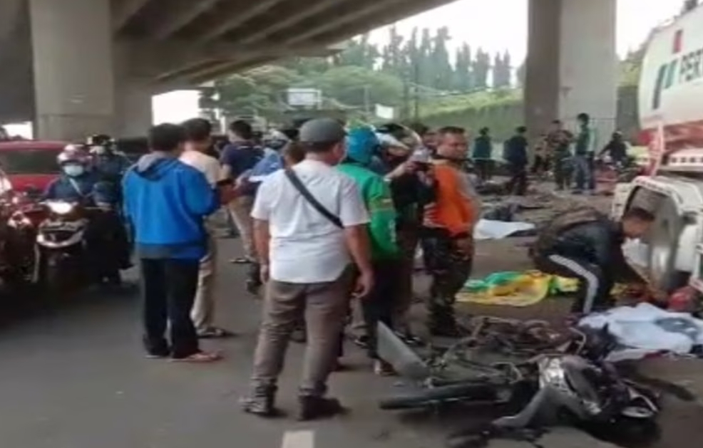 REPUBLIKNEWS.CO.ID, CIBUBUR – Kecelakaan maut terjadi di jalan alternatif Cibubur ke arah Cileungsi, Jawa Barat, Senin (18/7/2022). Truk tangki Pertamina menabrak sejumlah pengendara mobil dan motor.