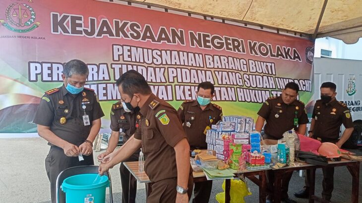 REPUBLIKNEWS.CO.ID, KOLAKA — Kejaksaan Negeri Kolaka melakukan Pemusnahan Barang Bukti yang telah mempunyai Kekuatan Hukum tetap (Incracht), untuk  Tindak Pidana Umum dan Tindak Pidana Khusus, pada Hari Kamis (03/02/2022 ), berlangsung di Halaman Kejaksaan Negeri Kolaka, Sulawesi Tenggara.