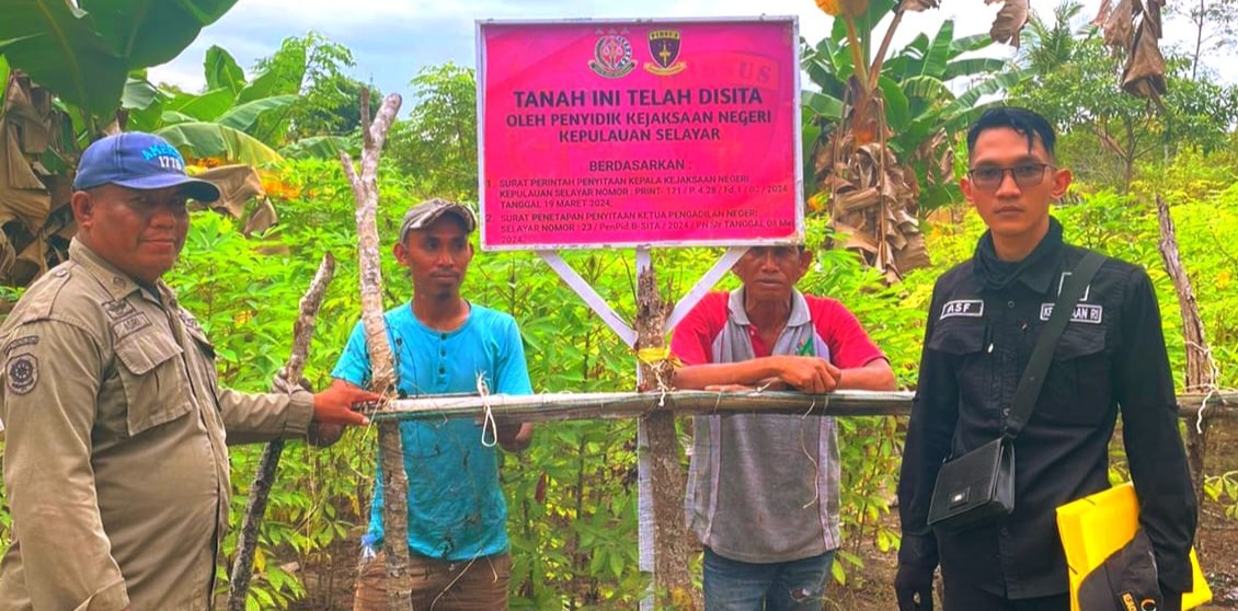 Penyitaan tersebut dilakukan berdasarkan Surat Perintah Penyitaan Kepala Kejaksaan Negeri Kepulauan Selayar No. Print-171/P.4.28/Fd.1/03/2024 tanggal 19 Maret 2024 dan surat Penetapan Ketua Pengadilan Negeri Selayar No. 23/PenPid.B-SITA/2024/PN.Slr Tanggal 3 Mei 2024. Hal itu ditandai dengan pemasangan plang tanda penyitaan pada 9 (sembilan) titik lokasi tanah milik Kades Lamantu yang terletak di Desa Lamantu Kecamatan Pasimarannu, Kepulauan Selayar.