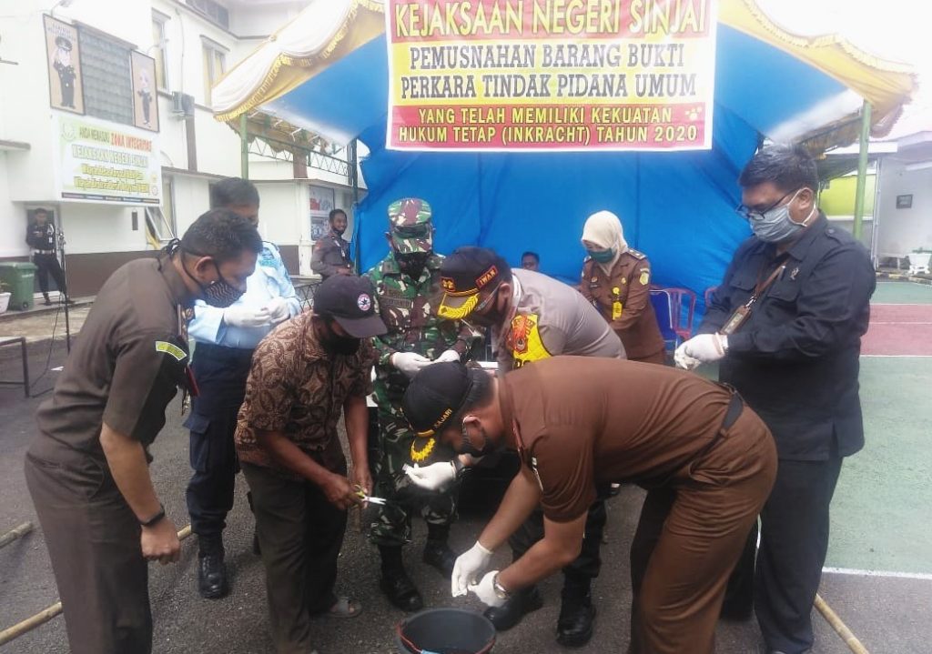 Pemusnahan dilakukan langsung oleh Kepala Kejaksaan Negeri Sinjai bersama unsur Forkopimda, Kepala Seksi, Kasubsi, dan Jaksa lingkup Kejaksaan Negeri Sinjai.