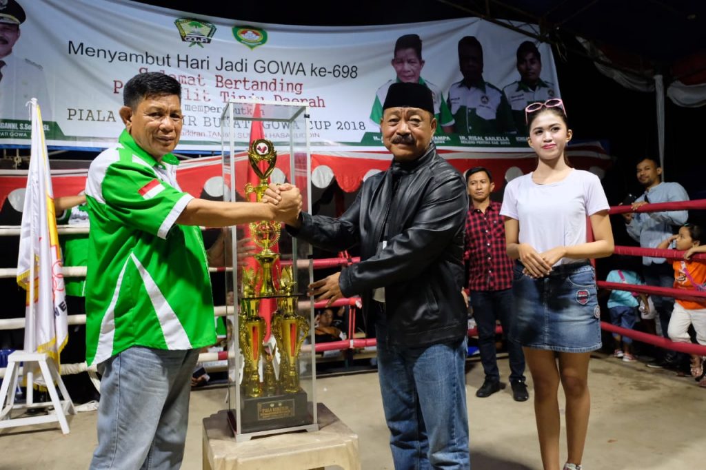 REPUBLIKNEWS.CO.ID, GOWA – Kejuaraan Tinju Bupati Gowa Cup Tahun 2018 yang dimulai sejak Kamis lalu, akhirnya resmi ditutup oleh Wakil Bupati Gowa, Abdul Rauf Malaganni dan mengantarkan Kabupaten Gowa meraih juara umum dan patut membawa pulang piala bergilir.