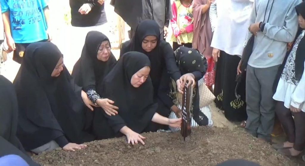 Saat proses pemakaman, terlihat isteri dan ketiga anak Daeng Kana tak kuasa menahan tangisnya.