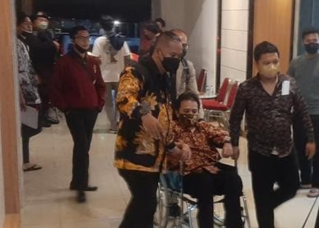 Dia dipapah oleh penasihat hukum saat menuruni satu per satu anak tangga. Bahkan, setiba di lantai dasar, Roy Suryo harus menggunakan kursi roda untuk bisa menuju pintu keluar.