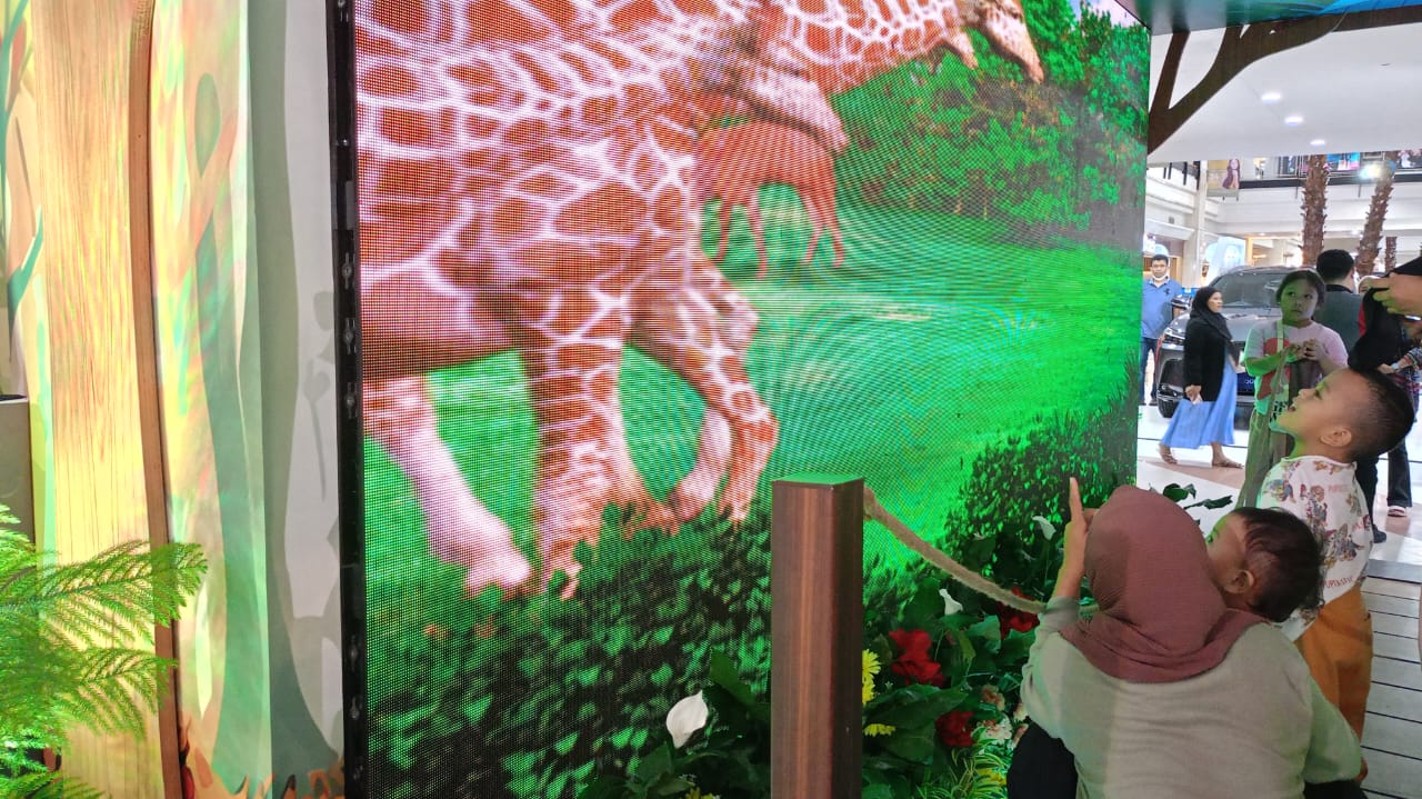 REPUBLIKNEWS.CO.ID, MAKASSAR — Rian, anak 7 tahun mengenakan kaos putih, celana biru berbahan jeans terlihat menikmati gambar-gambar animasi 3D yang nampak di layar screen besar dengan background hutan. Nampak hewan-hewan yang biasa ditemui di hutan, seperti Zebra, Jerapa, Gajah, hingga Singa berlalu lalang.