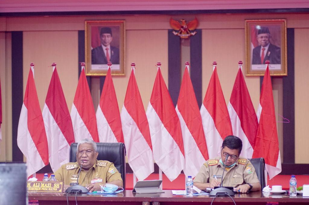 Gubernur Sultra Al Mazi, menghadiri rapat koordinasi yang digelar BPKM secara virtual, Selasa (06/10/2020).