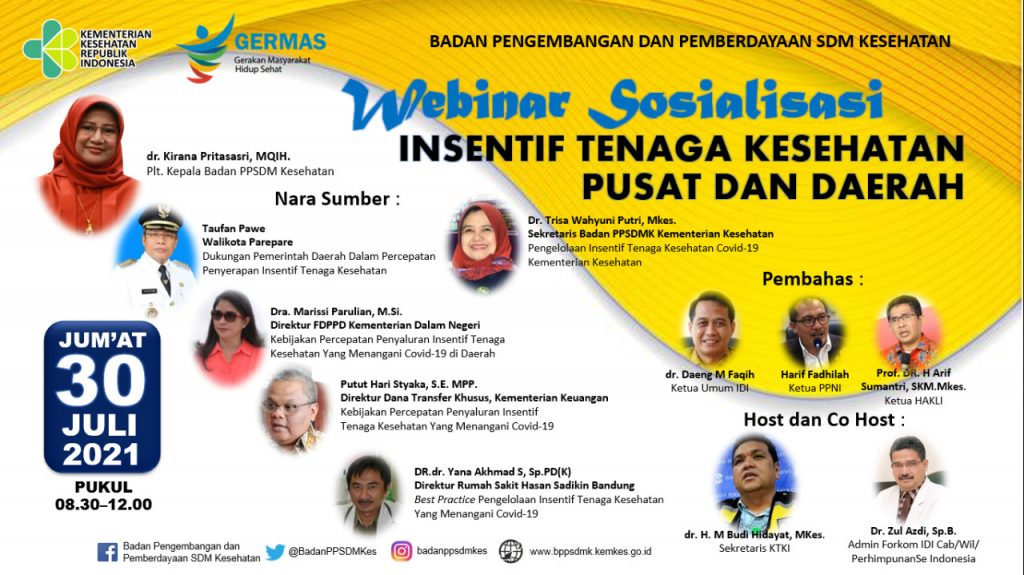 Lewat Badan Pengembangan dan Pemberdayaan Sumber Daya Manusia Kesehatan (BPPSDMK), Taufan Pawe dipercaya menjadi pembicara pada Webinar Sosialisasi Insentif Tenaga Kesehatan Pusat dan Nasional yang digelar, Jumat, 30 Juli 2021.