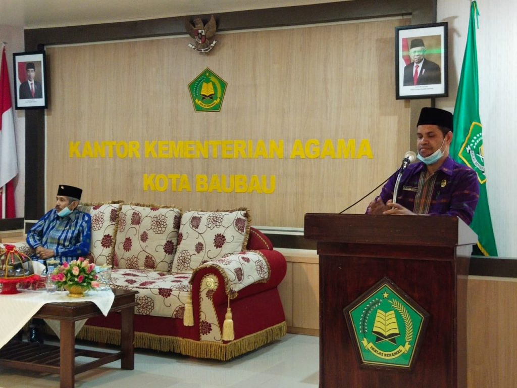 “Untuk itu, kehadiran Pak Wali di sini, di Kantor Kemenag Kota Baubau sore ini, agar kita mendapatkan pencerahan dari sumber utama Po5,” sambung Ka Kan Kemenag Kota Baubau,