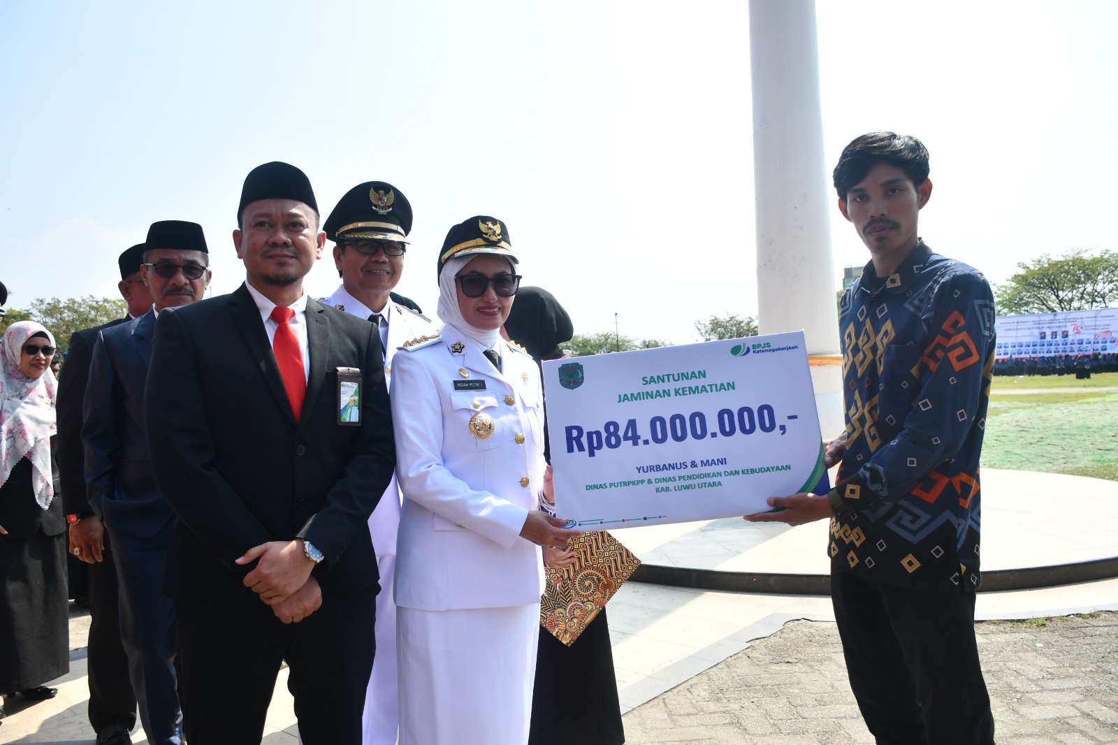 REPUBLIKNEWS.CO.ID, LUWU UTARA — Bekerjasama BPJS Ketenagakerjaan, Bupati Luwu Utara, Indah Putri Indriani menyerahkan santunan senilai ratusan juta rupiah tepat di HUT ke-79 Republik Indonesia.