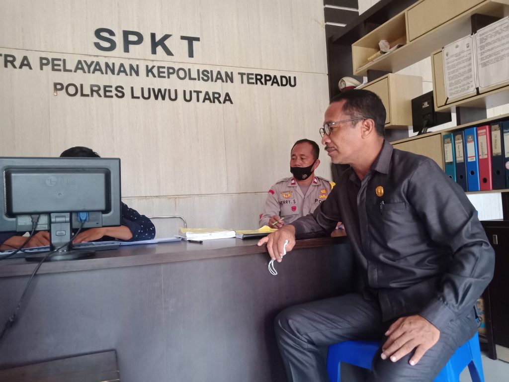 Tujuh belas legislator mendampingi Ketua DPRD Luwu Utara, Basir mendatangi Sentra Pelayanan Kepolisian Terpadu (SPKT) Polres Luwu Utara melaporkan, penghinaan yang dilakukan oleh calon wakil bupati Luwu Utara nomor urut satu, Rahmat Laguni.