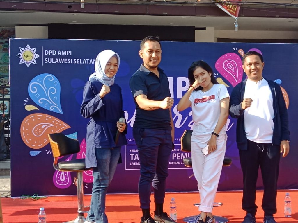 Kegiatan bertajuk AMPI COLOUR FUN yang dihelat pada pagi hari ini di area Car Free Day Jalan Boelavard Makassar. Dengan berbagai rangkaian kegiatan yang dilakukan, seperti senam millenial, pemeriksaan kesehatan gratis, talk show kepemudaan, live music dan charity untuk korban bencana Sulteng.