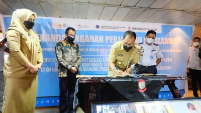 Diketahui, agenda ini adalah penandatanganan perjanjian kerjasama antara Kementerian Perhubungan RI dengan Pemerintah Kota Makassar dan PT Pelni (Persero) tentang penyelenggaraan Tempat Isolasi Apung Terpadu terhadap penanganan pasien dengan kasus konfrmasi tanpa gejala atau Asomptomatik Covid-19 KM Umsini.