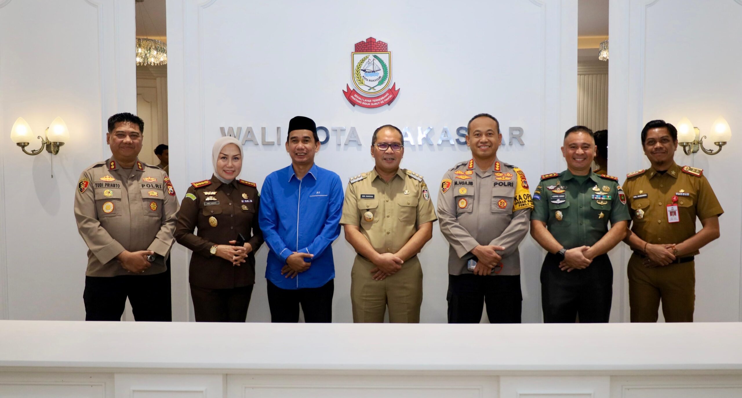 REPUBLIKNEWS.CO.ID, MAKASSAR – Wali Kota Makassar Moh Ramdhan Pomanto, Ketua DPRD Makassar Rudianto Lallo, serta jajaran Forkopimda Makassar lainnya berkunjung ke ruangan barunya pasca rehabilitasi Kantor Balai Kota, Makassar, Senin (8/1/2024).