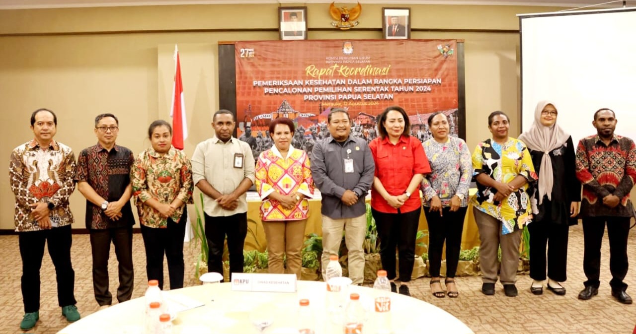 Rapat koordinasi yang menghadirkan ketua-ketua KPU dan komisioner dari 4 kabupaten se Provinsi Papua Selatan (Kabupaten Merauke, Mappi, Asmat dan Boven Digoel), membahas hal teknis pelaksanaan pemeriksaan kesehatan bagi pasangan calon.