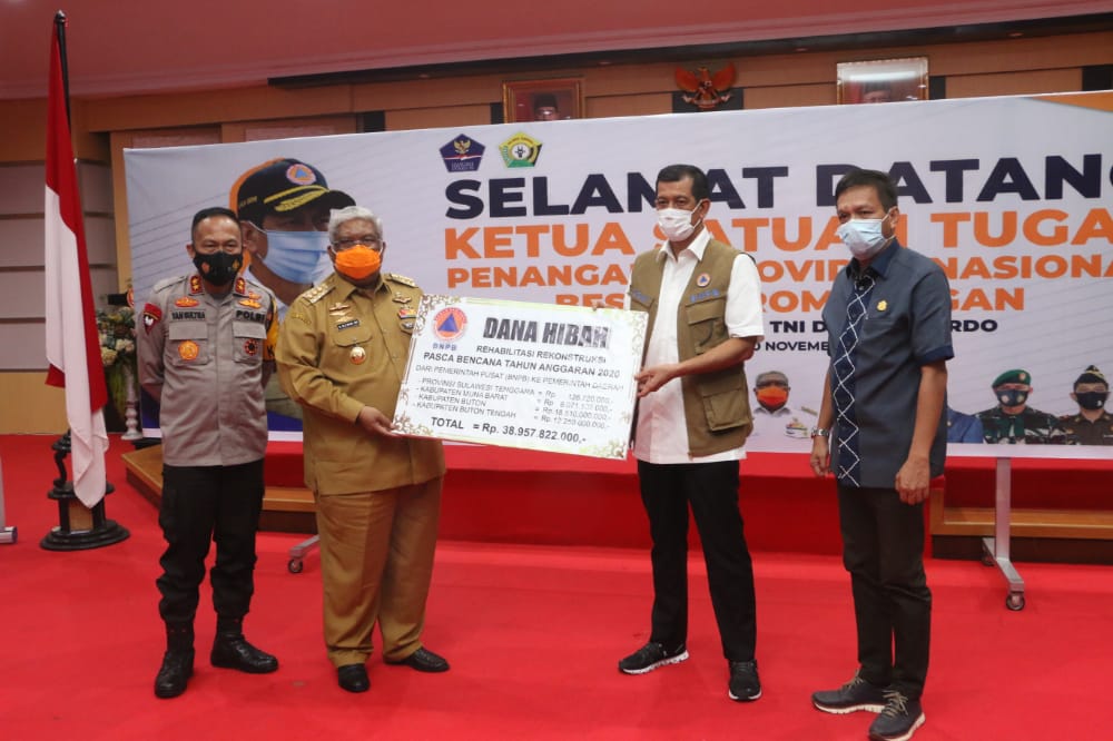 Selain bantuan fasilitas terkait Covid-19, selaku Kepala BNPB, Doni juga menyerahkan dana hibah dalam rangka rehabilitasi konstruksi pasca bencana di sejumlah daerah di Sultra termasuk pada Pemprov Sultra sendiri.