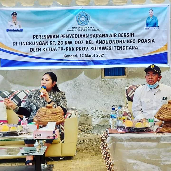 REPUBLIKNEWS.CO.ID, Kendari – Ketua Tim Penggerak PKK Provinsi Sulawesi Tenggara (Sultra) Agista Ariany menyerahkan bantuan sumur bor kepada warga Kelurahan Anduonohu Kecamatan Poasia Kota Kendari, Kamis (12/03/2021).
