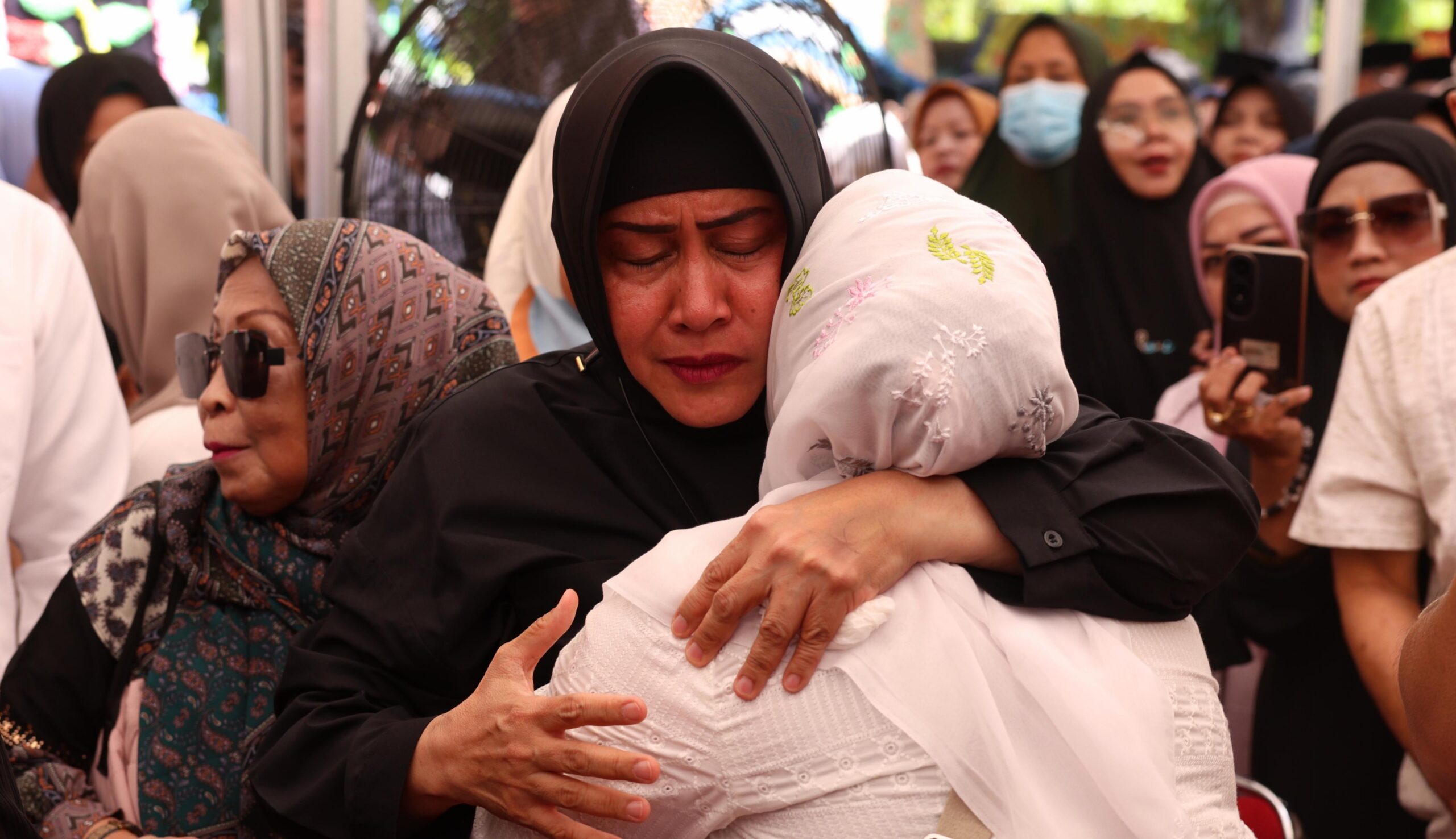 Dalam momen yang penuh haru tersebut, Indira terlihat berusaha menenangkan istri almarhum yang tampak sangat terpukul atas kepergian suaminya. Indira merangkul sang istri erat, sambil memberikan dukungan moril.