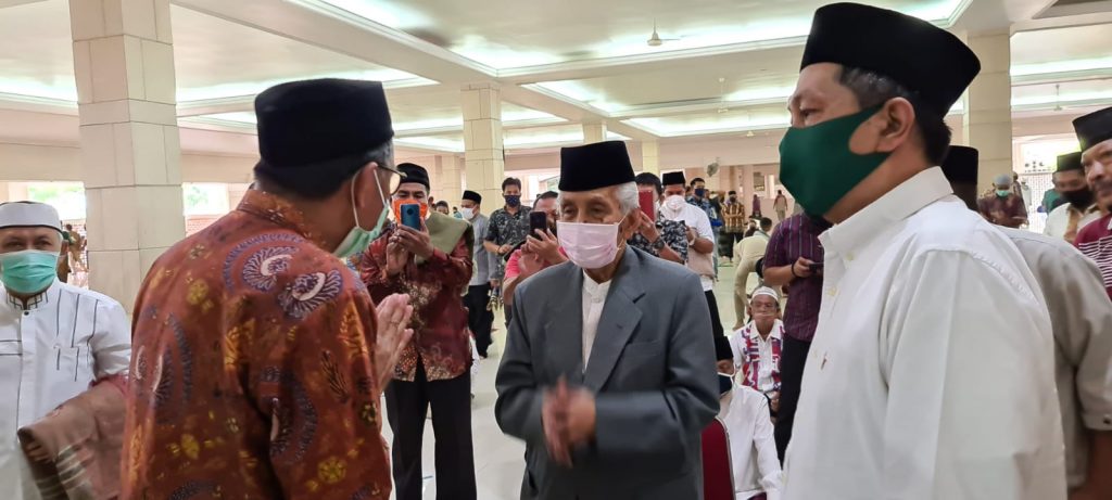 REPUBLIKNEWS.CO.ID, MAKASSAR — Suara Ketua MUI Sulsel KH AGH Sanusi Baco Lc, berubah karena tidak tahan tagisan saat menyampaikan sambutan usai salat Jumat di Masjid Raya Makassar, Jumat (12/06/2020).