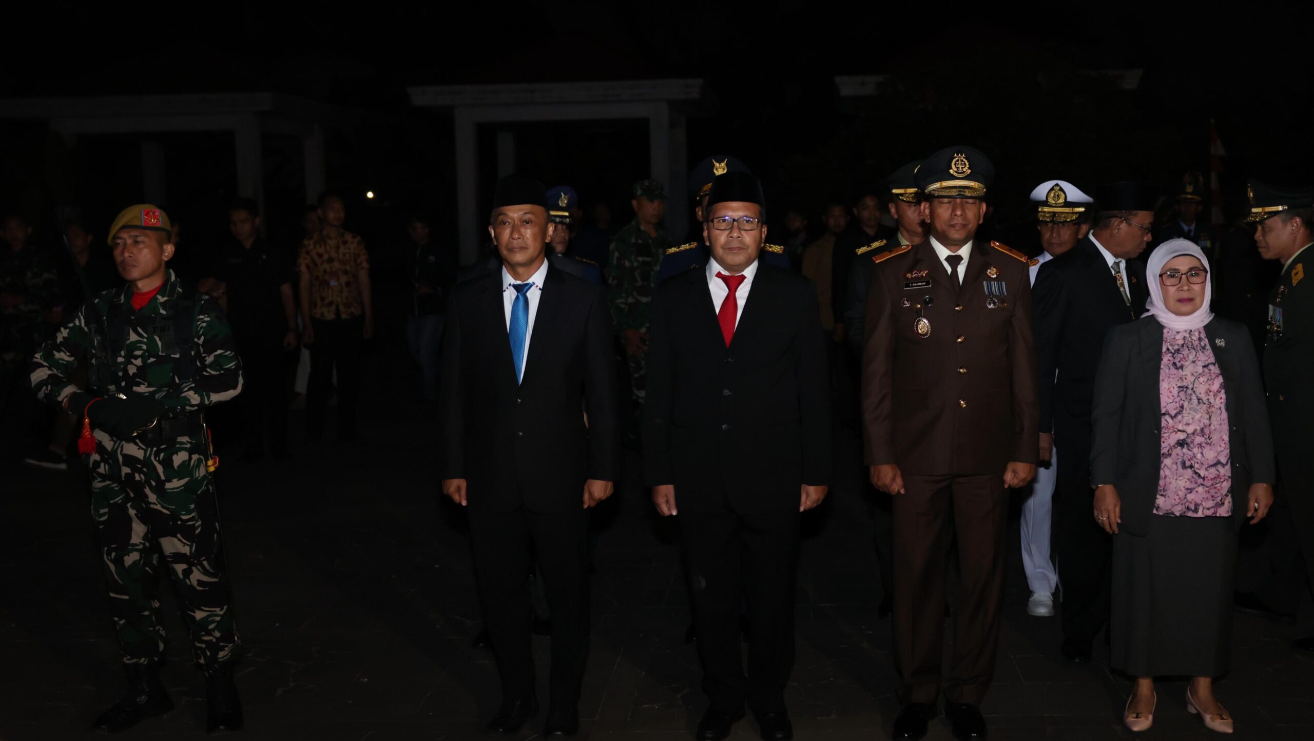 Upacara berlangsung khidmat dengan mengheningkan cipta. Suasananya juga penuh haru dan penghormatan.