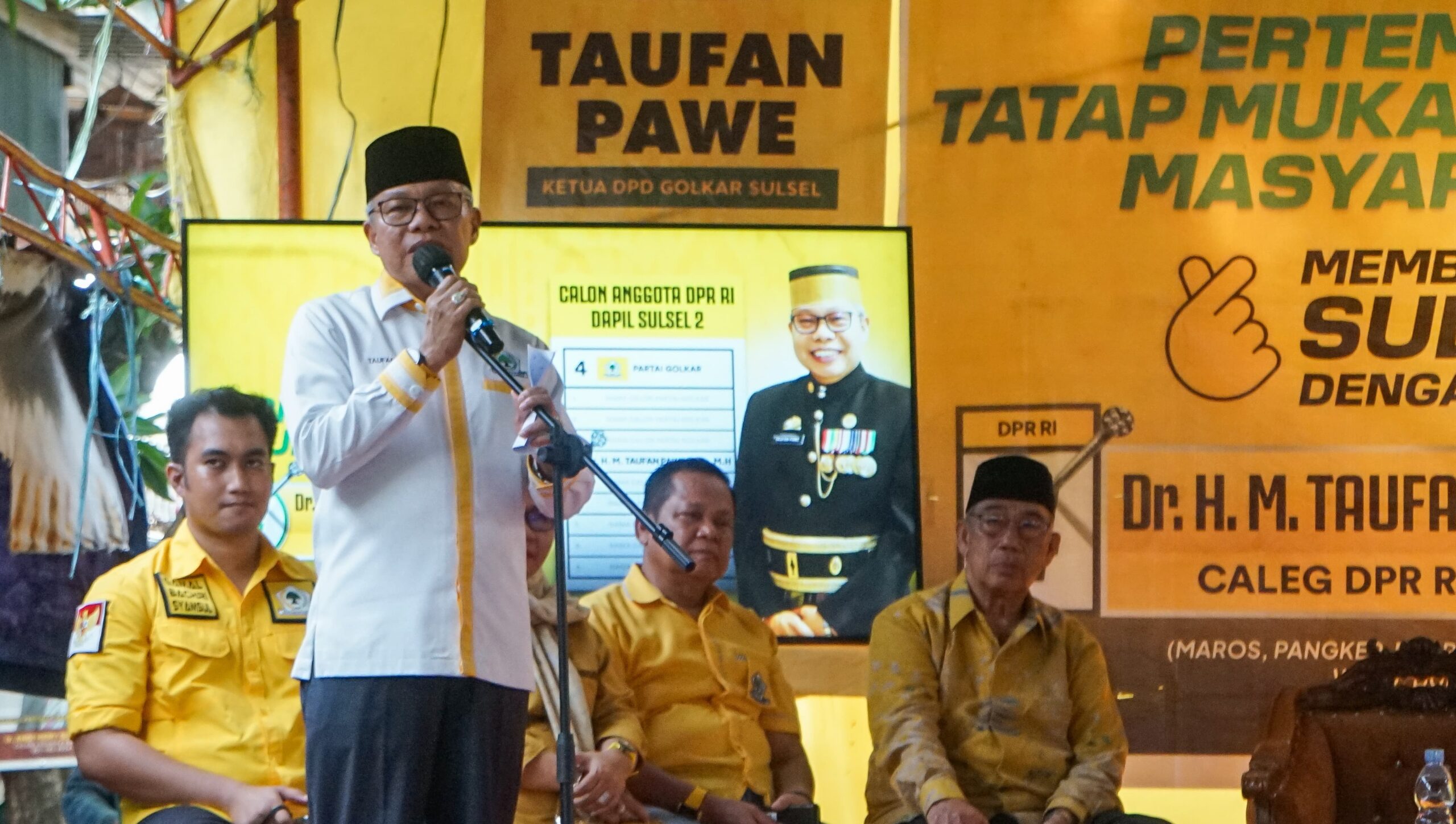 “Kader Golkar sesungguhnya dikenal dengan karya kekaryaannya. Berprestasi, bermanfaat, memperhatikan, dan selalu ada di hati masyarakat. Alhamdulilah hari ini terbukti dengan kehadiran kita semua,” kata Taufan Pawe.