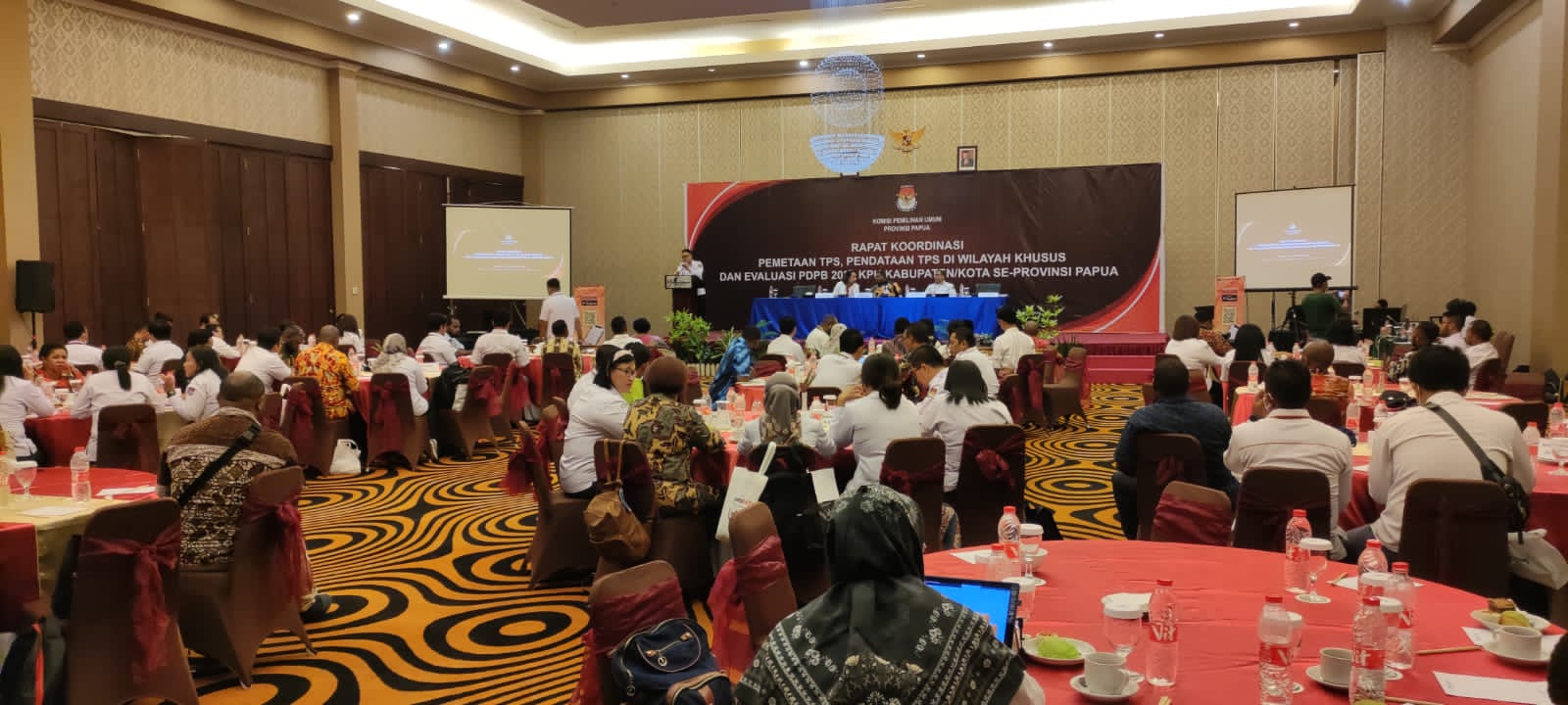 REPUBLIKNEWS.CO.ID, MERAUKE – Komisi Pemilihan Umum (KPU) Provinsi Papua menggelar Rapat Koordinasi Pemetaan dan Pendataan Tempat Pemungutan Suara (TPS) di Wilayah Khusus dan Evaluasi Pemutahiran Data Pemilih Berkelanjutan (PDPB) Tahun 2022 yang melibatkan anggota Komisioner KPU Devisi Data dan Informasi dari 29 Kabupaten dan Kota se-Provinsi Papua.