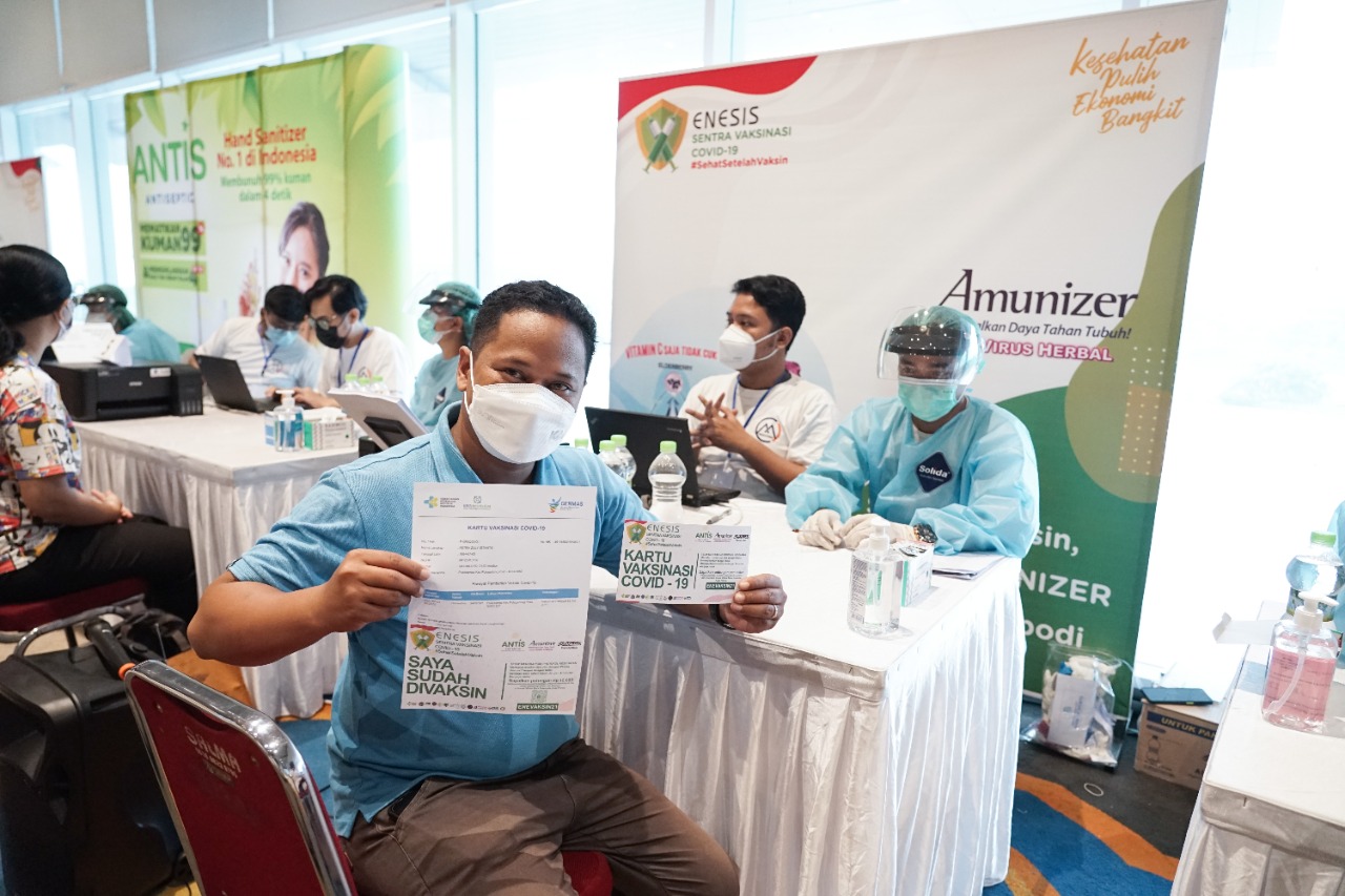 Komitmen Enesis Group dalam membantu pemerintah mempercepat capaian vaksinasi di sejumlah wilayah dilakukan dengan berkontribusi membantu pemerintah. Salah satunya melalui kerjasama Antis Hand Sanitizer bersama Kementerian Pariwisata dan Ekonomi Kreatif (Kemenparekraf) RI dengan meluncurkan mobil vaksinasi keliling.
